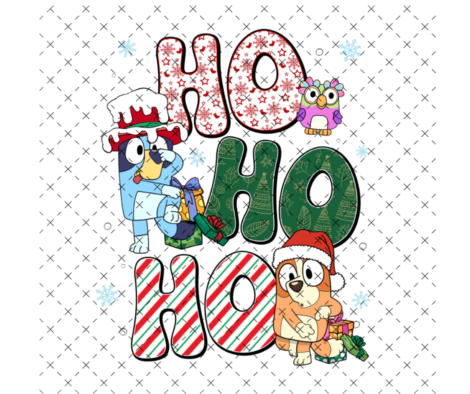 Blue Dog Ho Ho Ho Christmas DTF Print